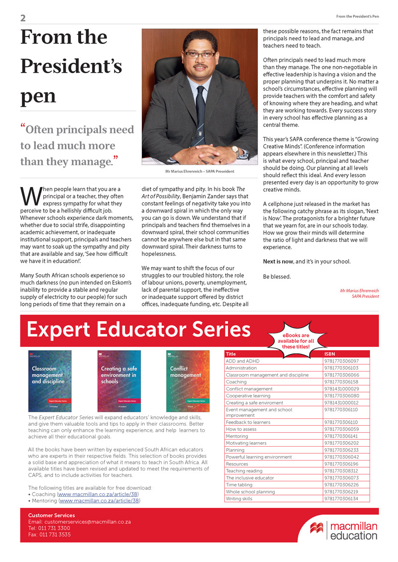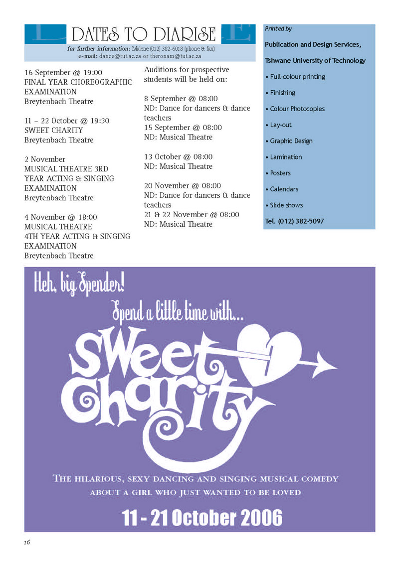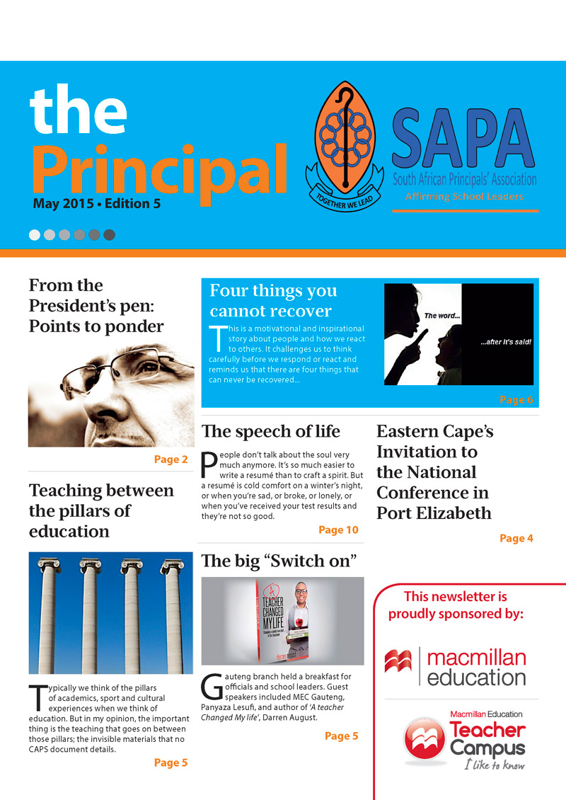 Newsletters Heinemann Publishers: The Learning Curve Horizons Newsletter South African Principal's Association Newsletter TUT Dance and Musical Theatre Newsletter