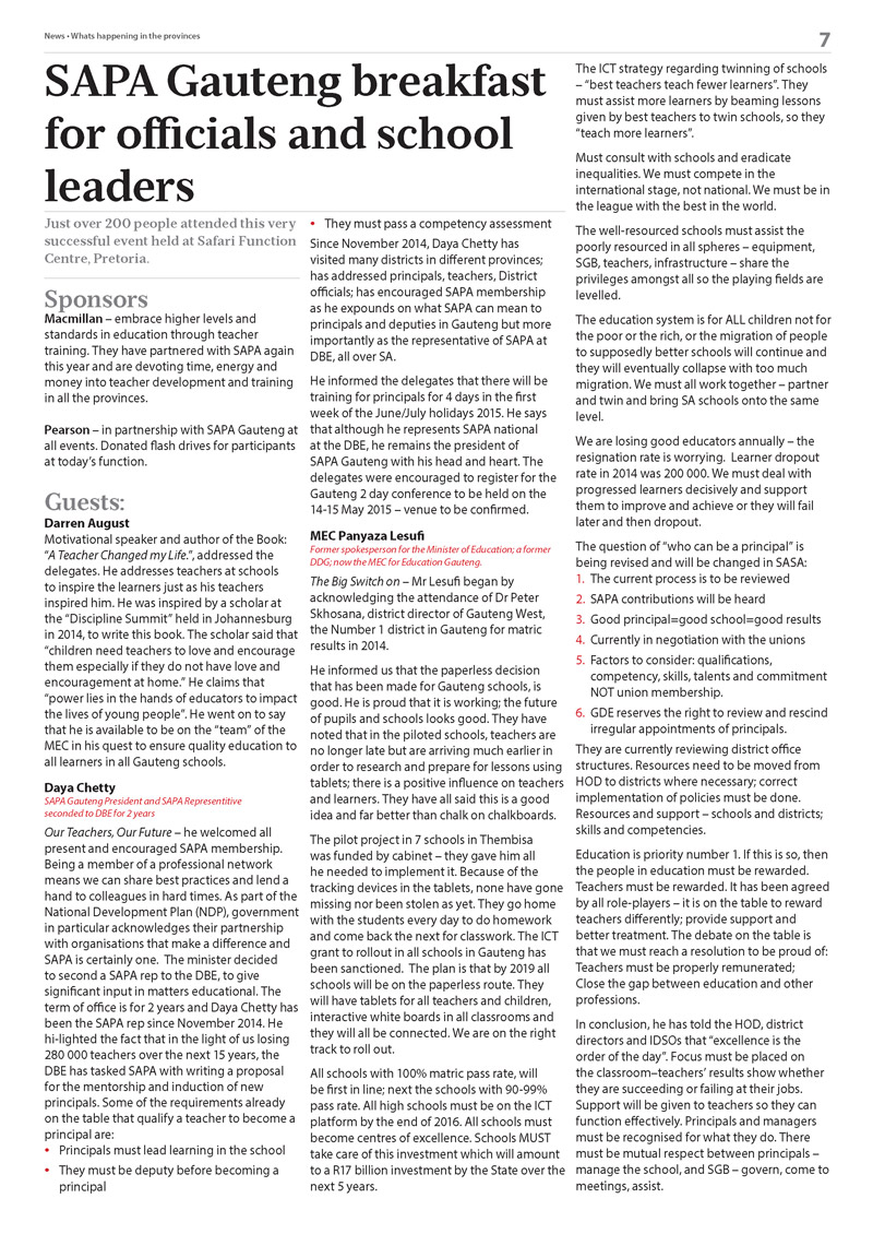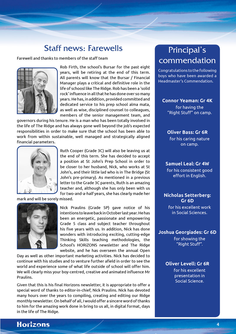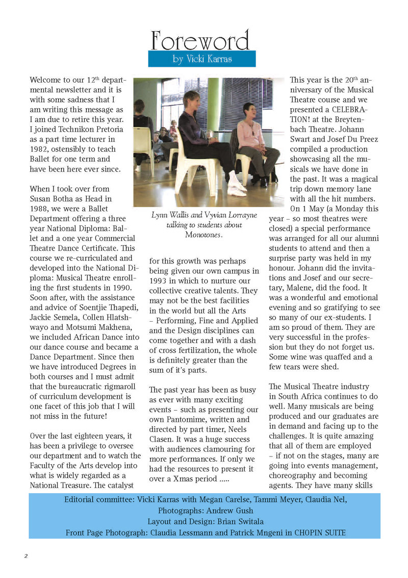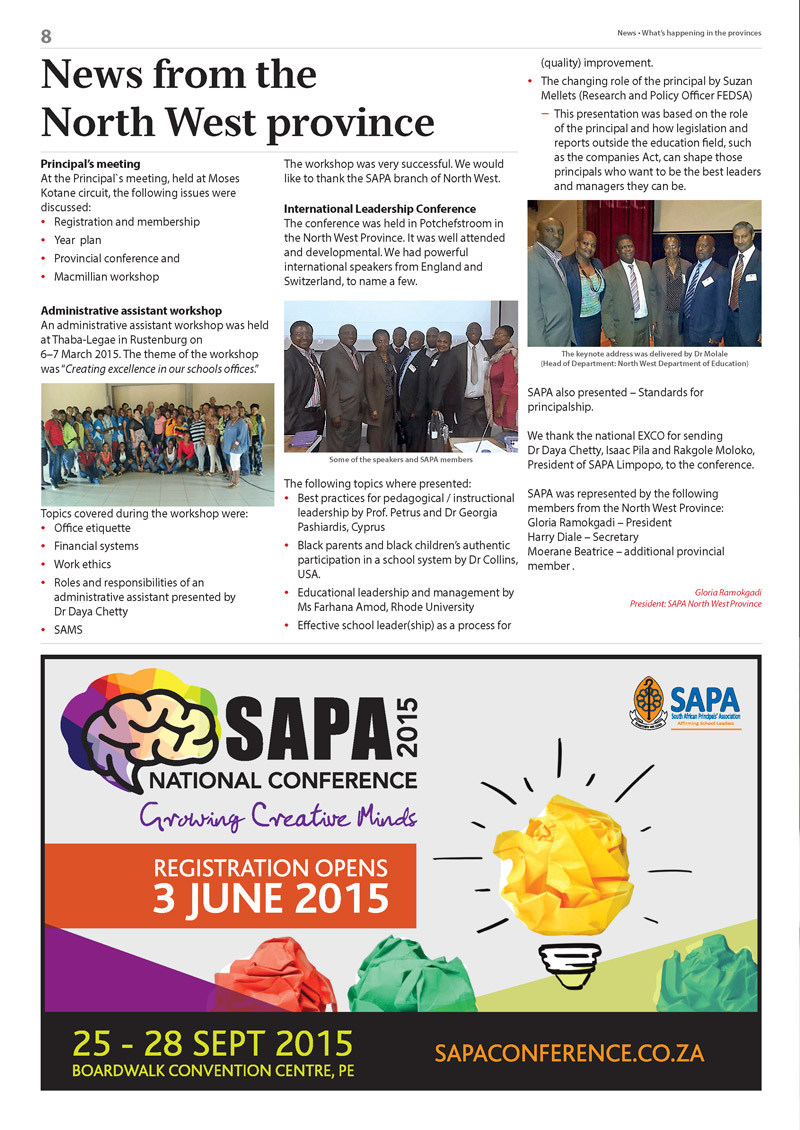 Newsletters Heinemann Publishers: The Learning Curve Horizons Newsletter South African Principal's Association Newsletter TUT Dance and Musical Theatre Newsletter